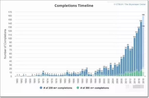 據(jù)報(bào)道,2018預(yù)計(jì)將成為另一個(gè)創(chuàng)紀(jì)錄的年份,其中兩座500米以上的建筑預(yù)計(jì)完工,天津高銀金融117大廈和北京529米高的中國(guó)尊大廈。