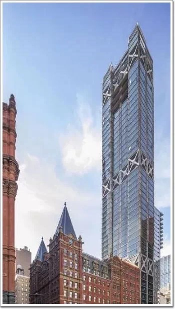2017年完成的第78個(gè)zui高的建筑(223米,或730英尺高),該項(xiàng)目是SOM在曼哈頓西總規(guī)劃內(nèi)完成的第 一座摩天大樓。