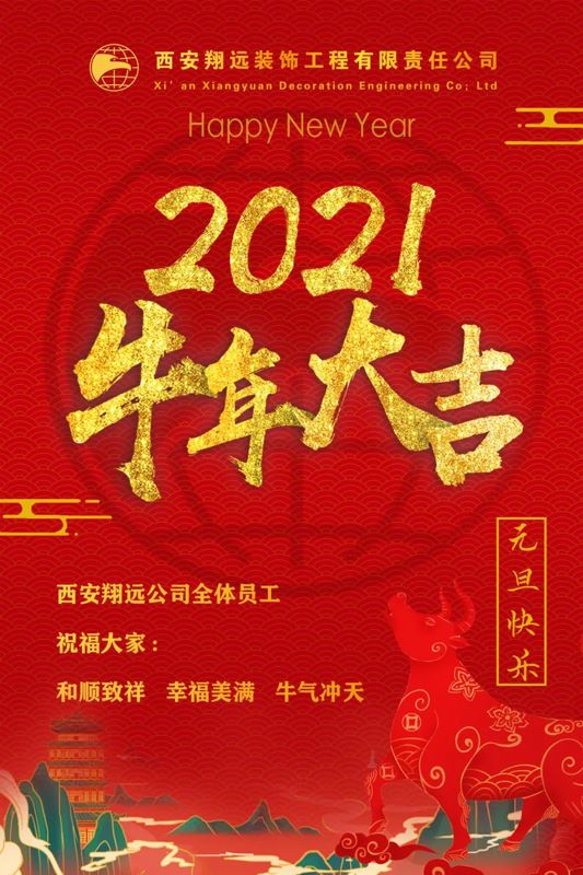 新年,即一年的新開始,為多數國家通行的節日。慶賀新年伊始是各國各地區的普遍習俗。不管是哪個國家的人們,都對新的一年充滿美好的希冀。“百里不同風,千里不同俗”,由于各個國家和地區其歷史、文化、宗教信仰、民族習慣不同,因此也都有自己不同的慶祝新年的習俗。在這辭舊迎新的日子里,所有國家的人們都以其別出心裁、獨具特色的方式迎接新年的到來。值此2021年元旦佳節來臨之際,西安翔遠全體員工向您及您的家人致以誠摯的節日問侯,恭祝各位大家元旦快樂!萬事如意!闔家幸福!
