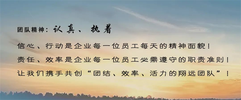 世界上最可怕的兩個(gè)詞,一個(gè)叫認(rèn)真,一個(gè)叫執(zhí)著,做到了就離成功不遠(yuǎn)了,我們翔遠(yuǎn)團(tuán)隊(duì)要始終以認(rèn)真、執(zhí)著的態(tài)度去面對(duì)工作,讓公司這艘大船乘風(fēng)破浪,安全前行,我們才能在勞動(dòng)中創(chuàng)造出價(jià)值的成就感,實(shí)現(xiàn)員工的個(gè)人價(jià)值,與企業(yè)共贏。