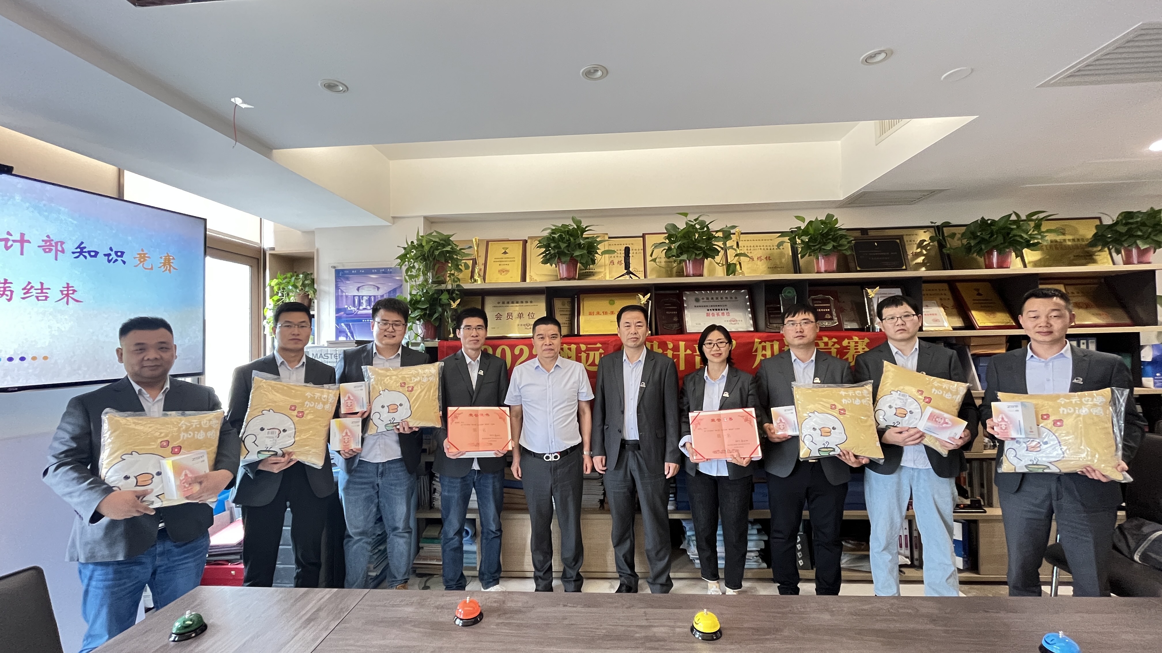在一陣激烈的角逐過后,兩場比賽的第一名都脫穎而出,內裝設計劉青利和外裝設計部師小明分別獲得第一名,由董總為第一名頒發獎品和證書;梁總和鄭總分別為內外裝設計部其余參賽人員頒發參與獎;至此,我們的比賽在精彩競答和歡聲笑語中圓滿落幕。