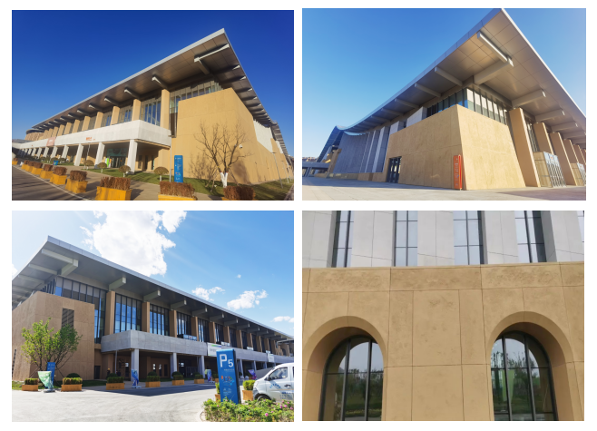 本項目幕墻工程施工范圍包含輕型混凝土掛板幕墻、玻璃幕墻、鋁合金裝飾格柵等。其中幕墻工程包含了西北首個大體量開縫式仿砂巖藝術(shù)混凝土幕墻、清水混凝土幕墻等多項工藝難點(該項目多項新工藝、新技術(shù)、實用新型已成功申請專利)。