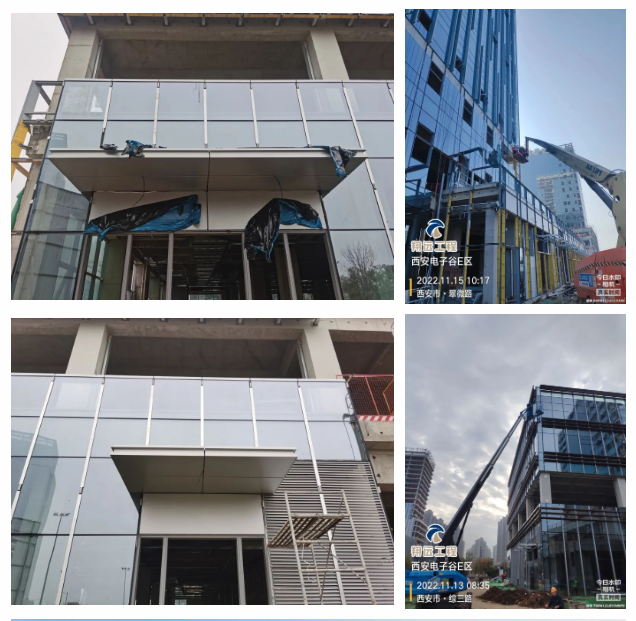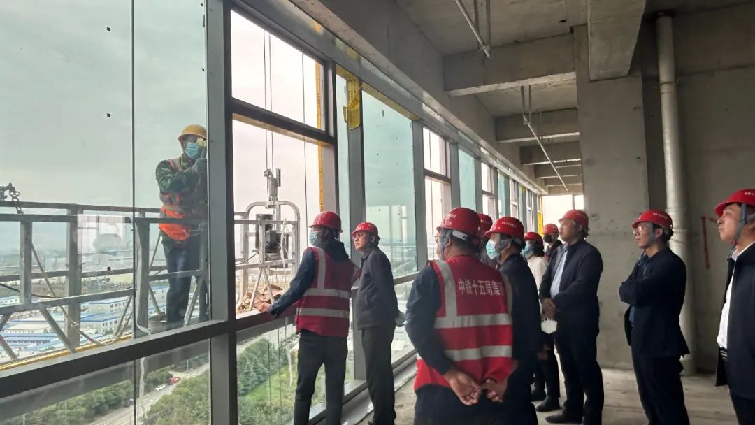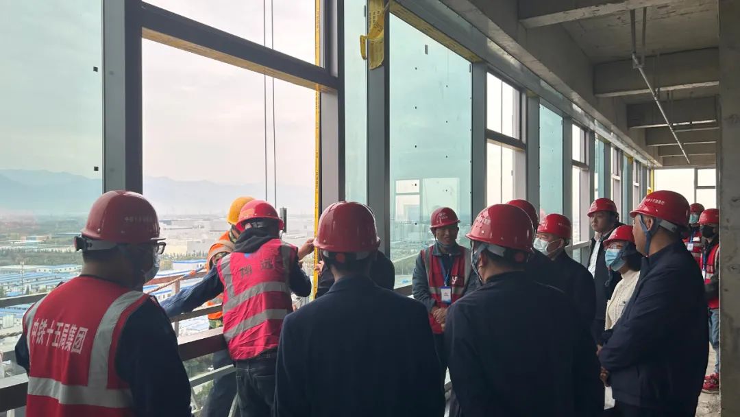 中鐵集團總公司相關領導一行對我們參建的電子谷幕墻項目進行視察,視察過程中,主要對單元板塊幕墻進行了從原材料采購、加工廠加工、到材料安裝等一系列的流程進行現場詳細交流。在交流過程中,對我們玻璃幕墻整體效果、細部節點處理、鋁板成品加工質量等方面做出充分肯定及表揚,稱贊我們現場管理人員在幕墻施工工藝方面有極高的專業度,并號召其他幕墻單位以我們為標桿,學習及交流。