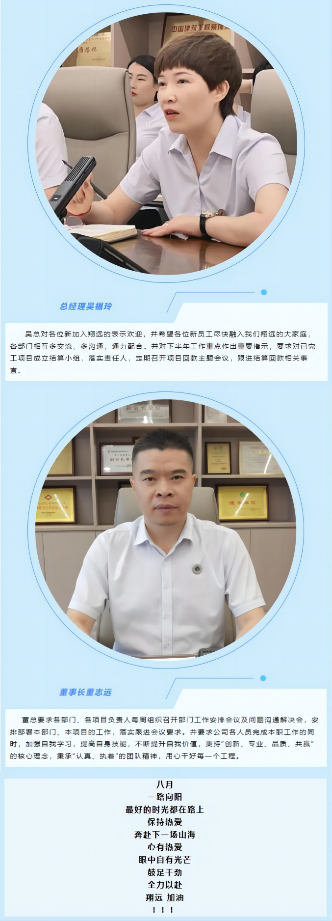 隨著公司的不斷發(fā)展,新起項目的進場,公司隊伍不斷壯大,新加入我們翔遠的伙伴們依次進行自我介紹,大家表示熱烈歡迎。