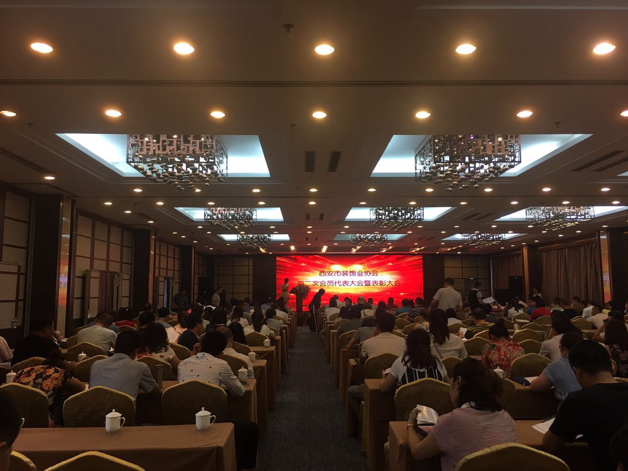 2017年6月21日上午,西安市裝飾業協會第二次會員代表大會在西安國際會議中心曲江賓館主樓三層第三國際會議廳隆重召開。本次會議,選舉產生了二屆理事會及二屆理事會副會長,對2016年度西安建筑裝飾行業優質工程(雁塔杯)、行業先進企業、行業先進項目經理等進行了表彰,并為獲獎企業頒獎授牌。