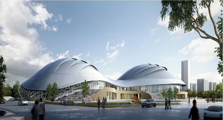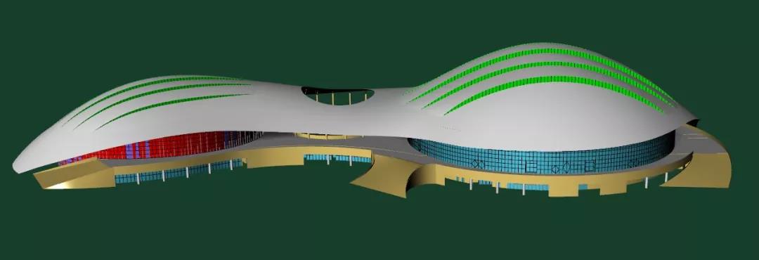 陜西奧體中心體育館項目幕墻工程包括半隱框玻璃幕墻,隱框幕墻,鋁板幕墻,電動天窗,車道雨棚等子項。其中,玻璃幕墻分為豎明橫隱玻璃幕墻、豎隱橫明玻璃幕墻、隱框玻璃幕墻;建筑多為曲面,定位復雜,幕墻立面與球形屋面交接部位高低起伏大且非規則形狀;屋面網架結構跨度較大,風壓作用變形對立面幕墻影響大;曲線形狀且平面尺度大、收邊收口多。